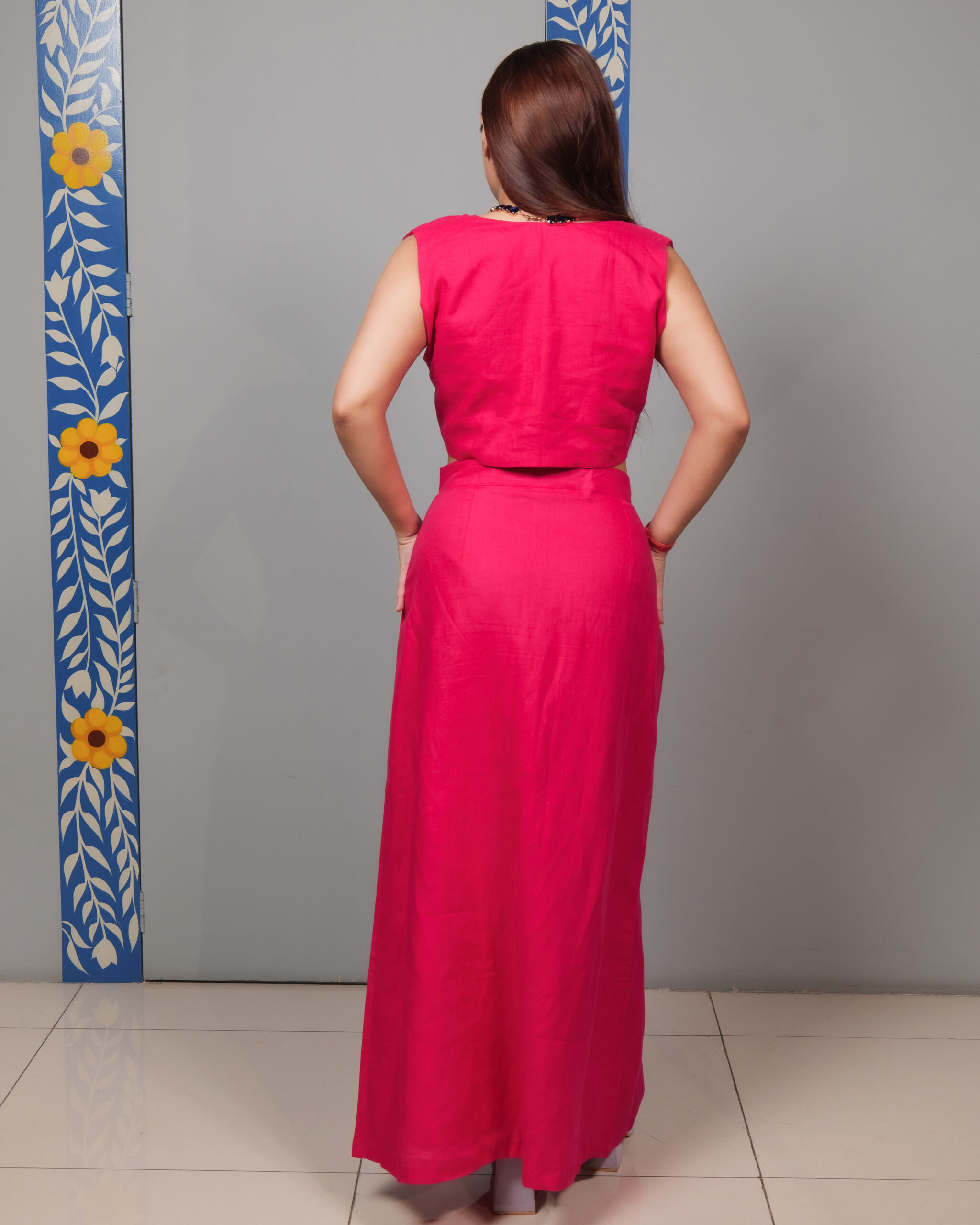 Home Linen Series Shabd Spoken || By Sequoiaa Hot Pink Waist Coat Set
