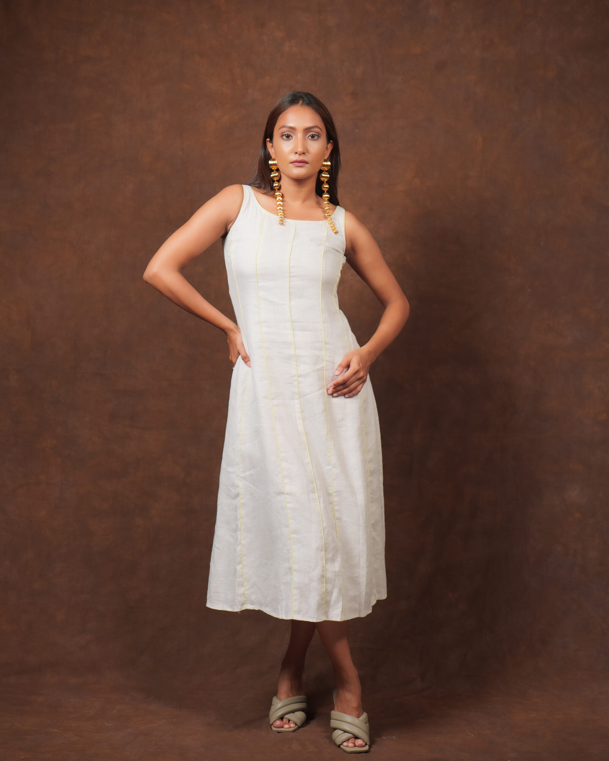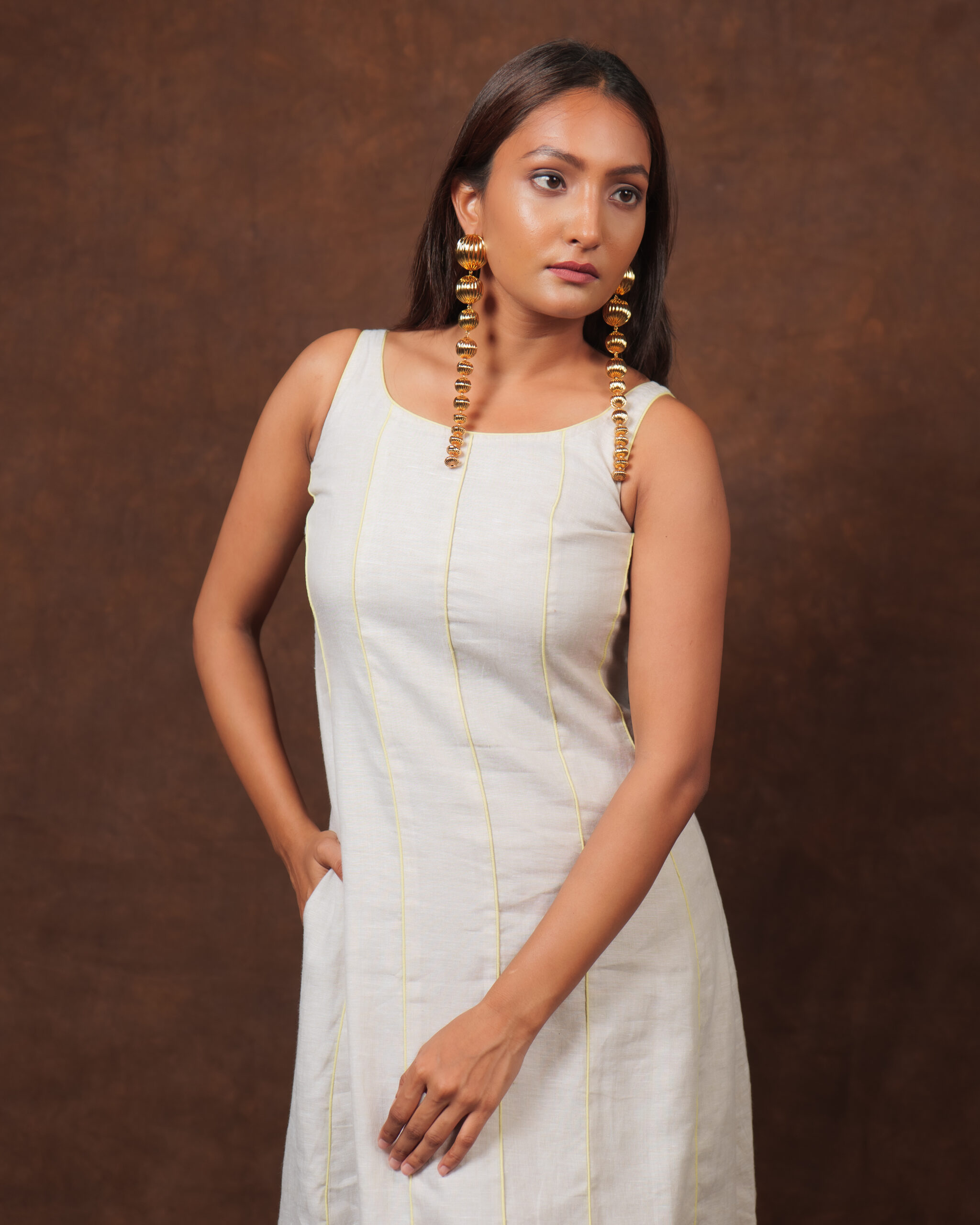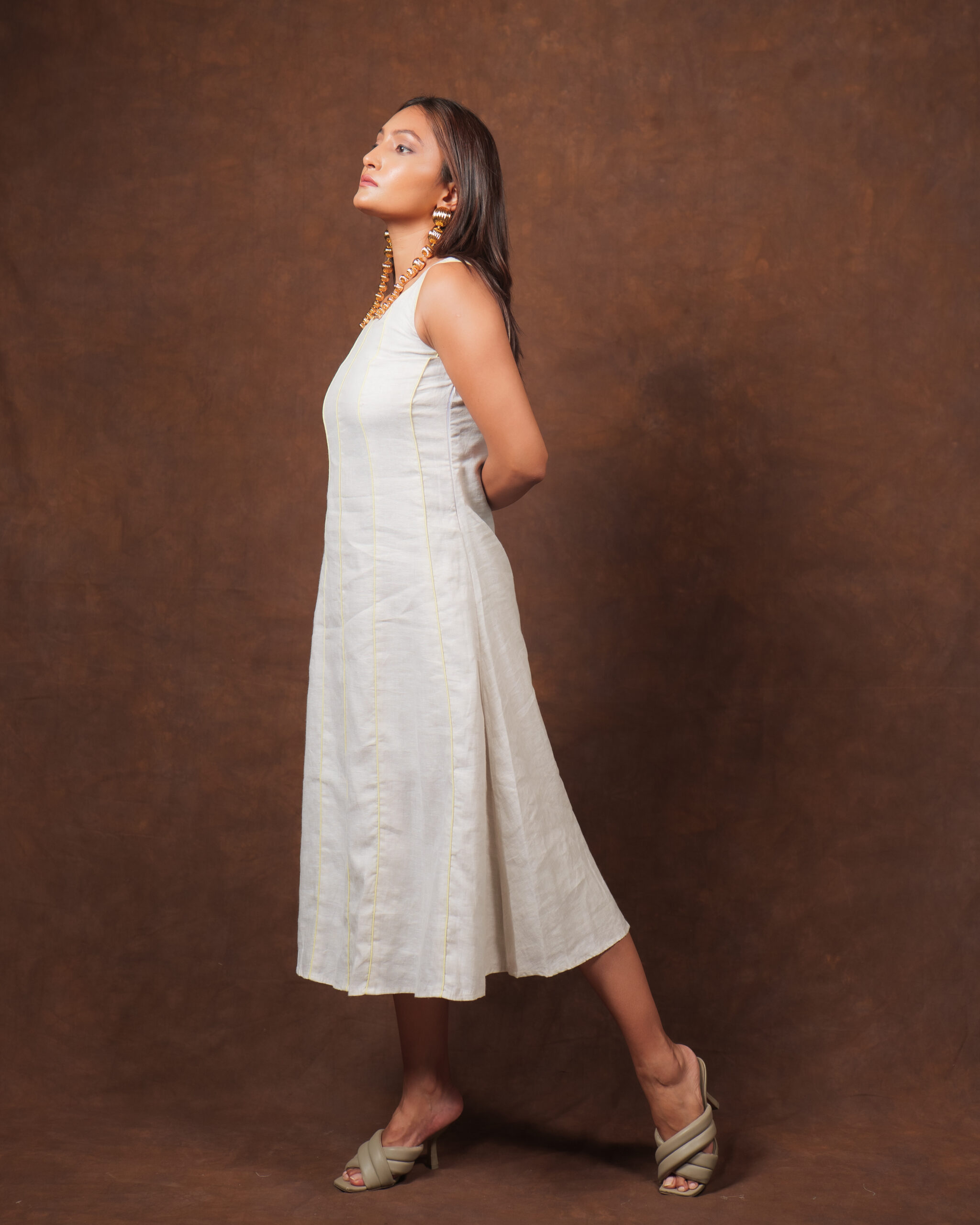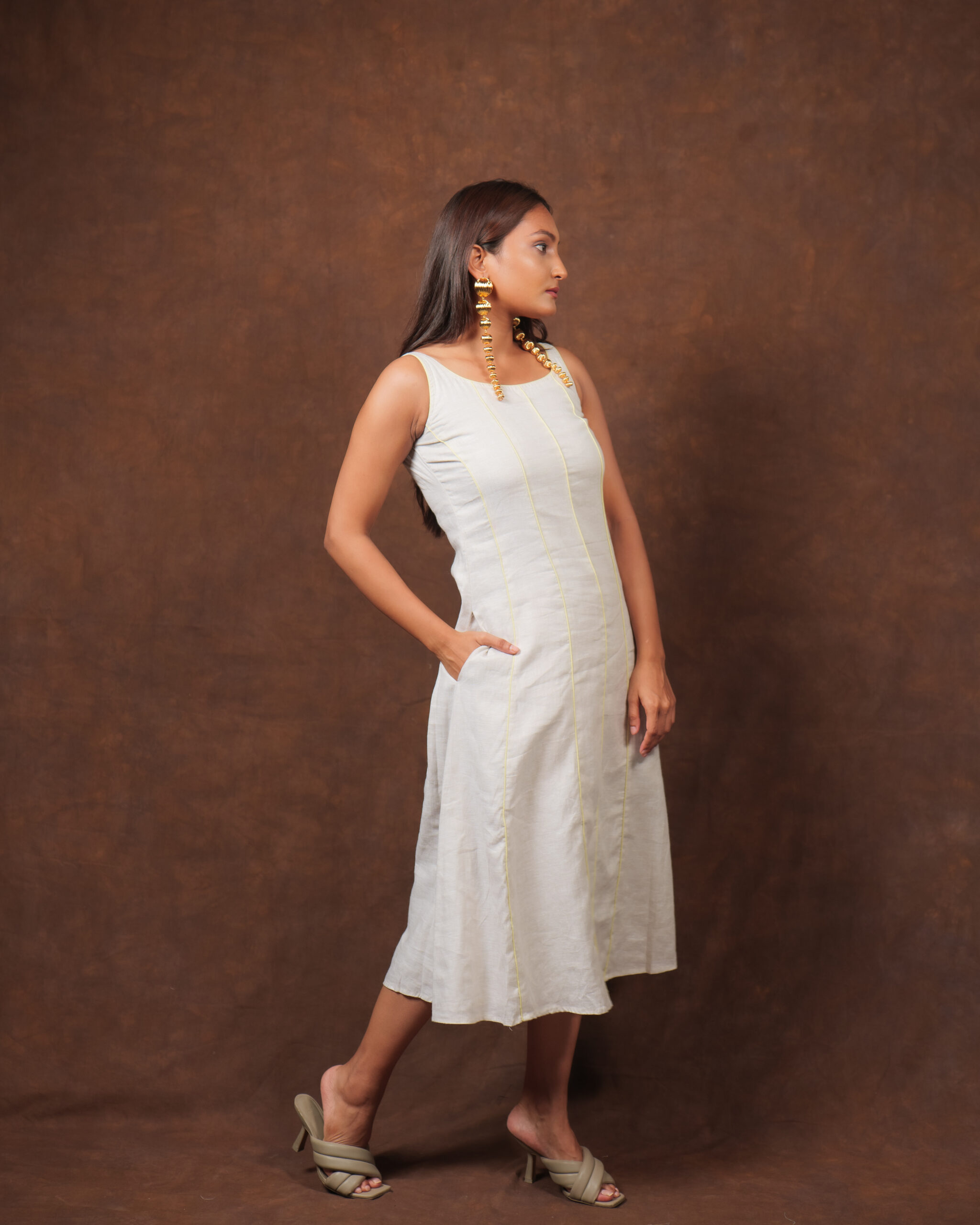 You can never go wrong with Linen dress, the easy fit of the dress with an added beautiful piping details at the front of the dress and A-Line cut gives it a perfect summer toned feeling, it’s your perfect choice for your Lunch Date look to your kid’s Kindergarten party look. Linen is a fabric that softens itself with every wash. Great for your skin – anti-static with its own pH balance.